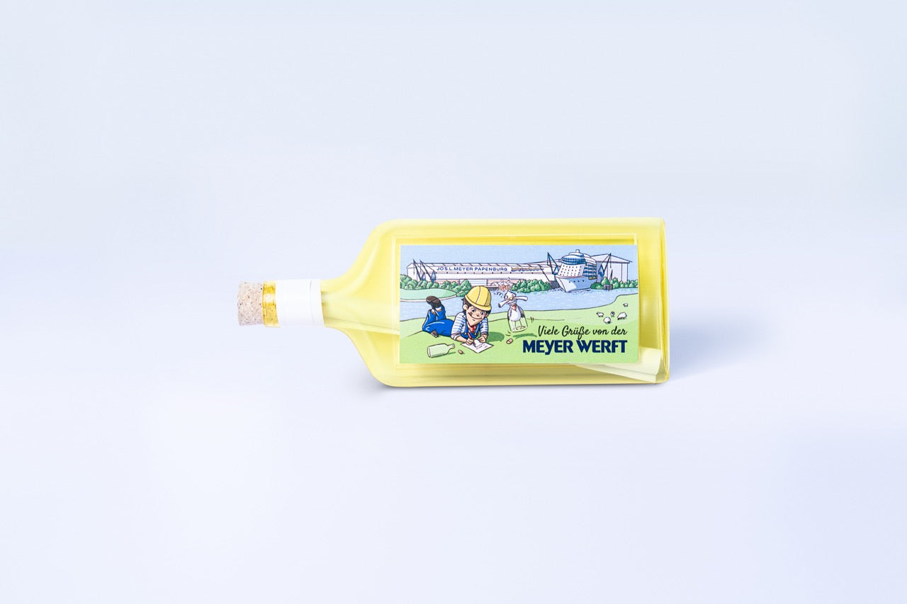 Schreibe deinen Freunden die wohl authentischste Postkarte der MEYER WERFT: eine Flaschenpost!